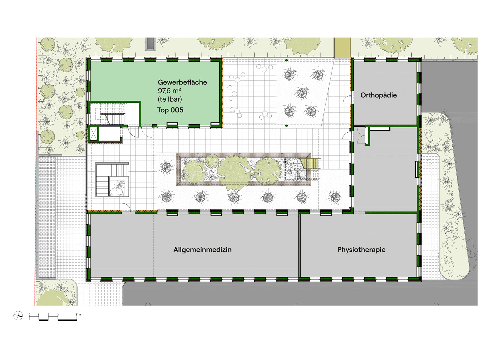 Moderne Büro- und Praxisräumlichkeiten - lichtdurchflutetes Atrium
